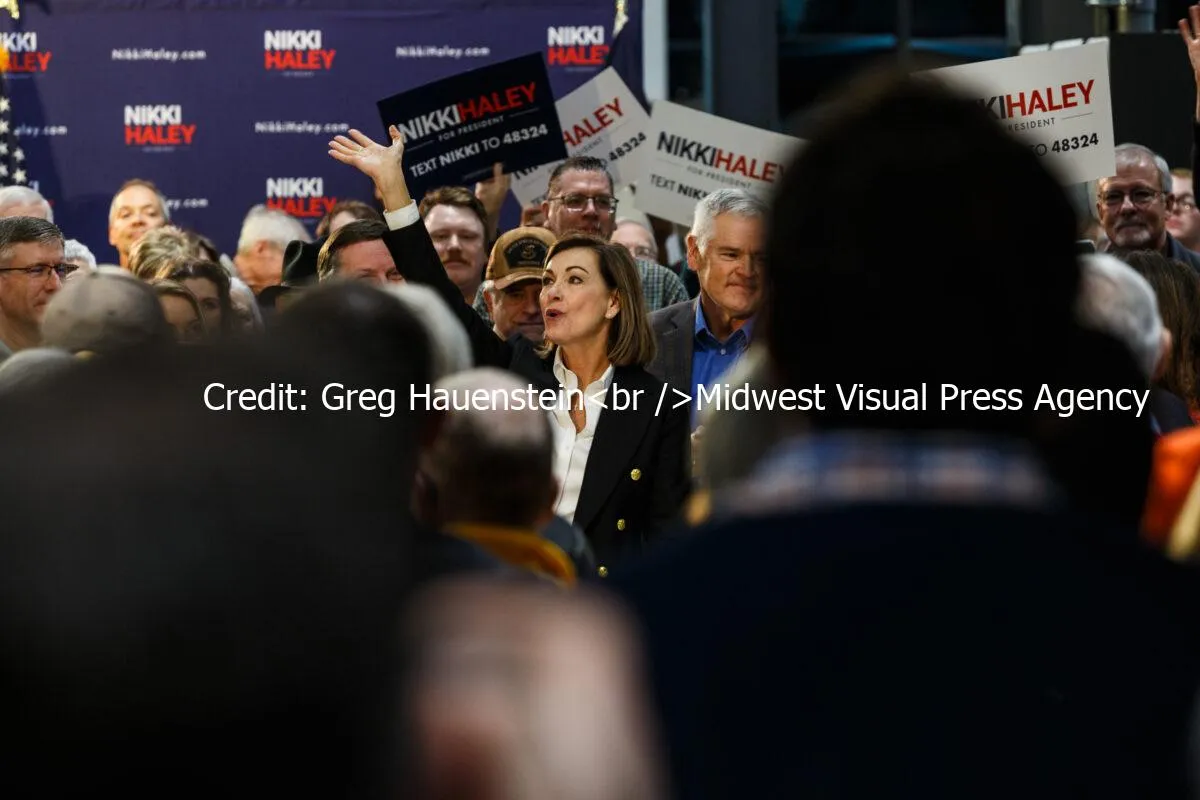 Shortly after declaring her candidacy for President of the United States, former UN Ambassador Nikki Haley (R-SC) held a town hall meeting at Royal Flooring in Urbandale, Iowa on February 20, 2023.